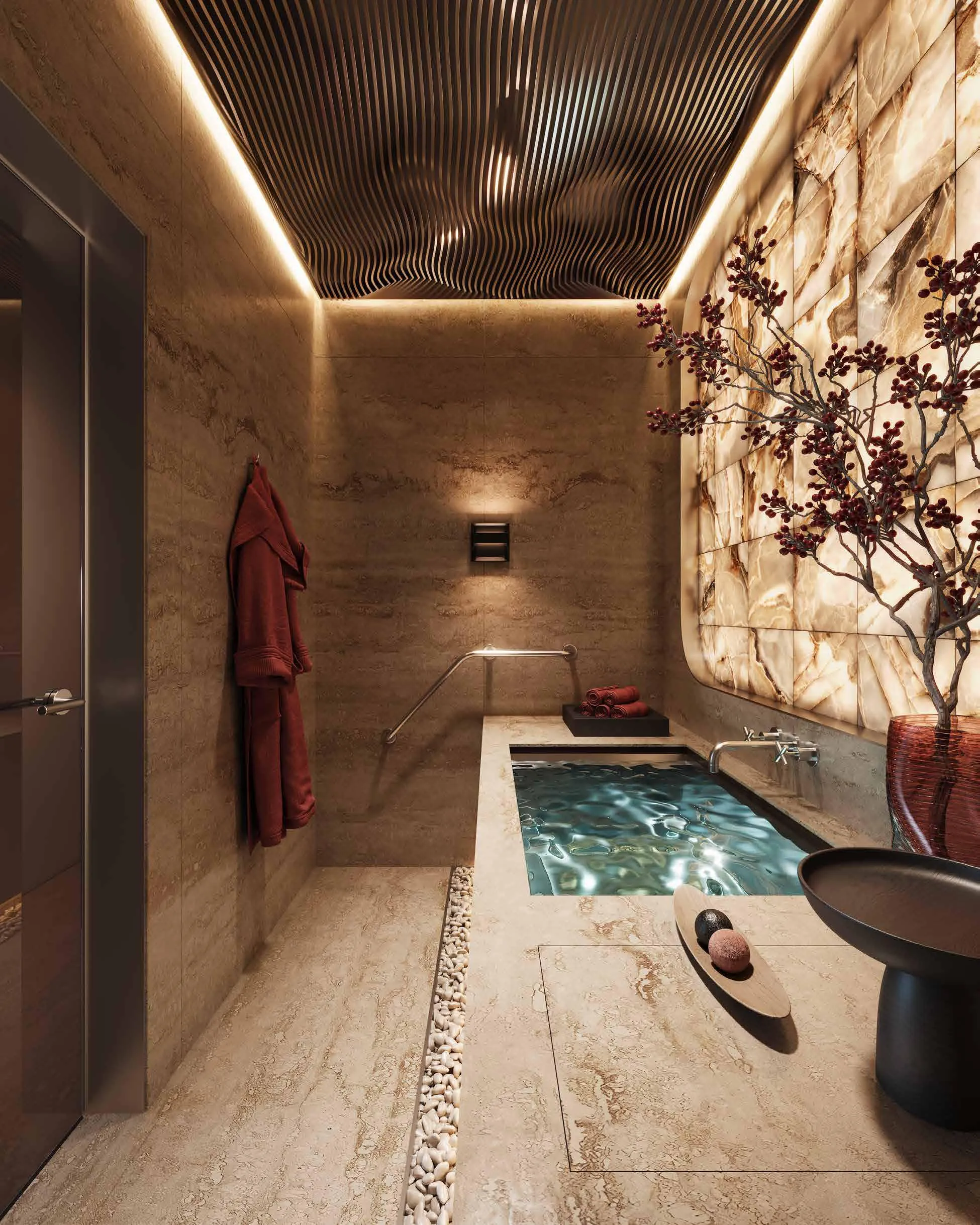 Stylish accessories, captivating books,and a thought fully designed shower area enhance the modern appeal of MAG777 apartments. Modern gray limestone tiles in elegant pastel tones adorn the floors, complemented by carefully chosen indoor plants that bring a lush charm to the contemporary setting.