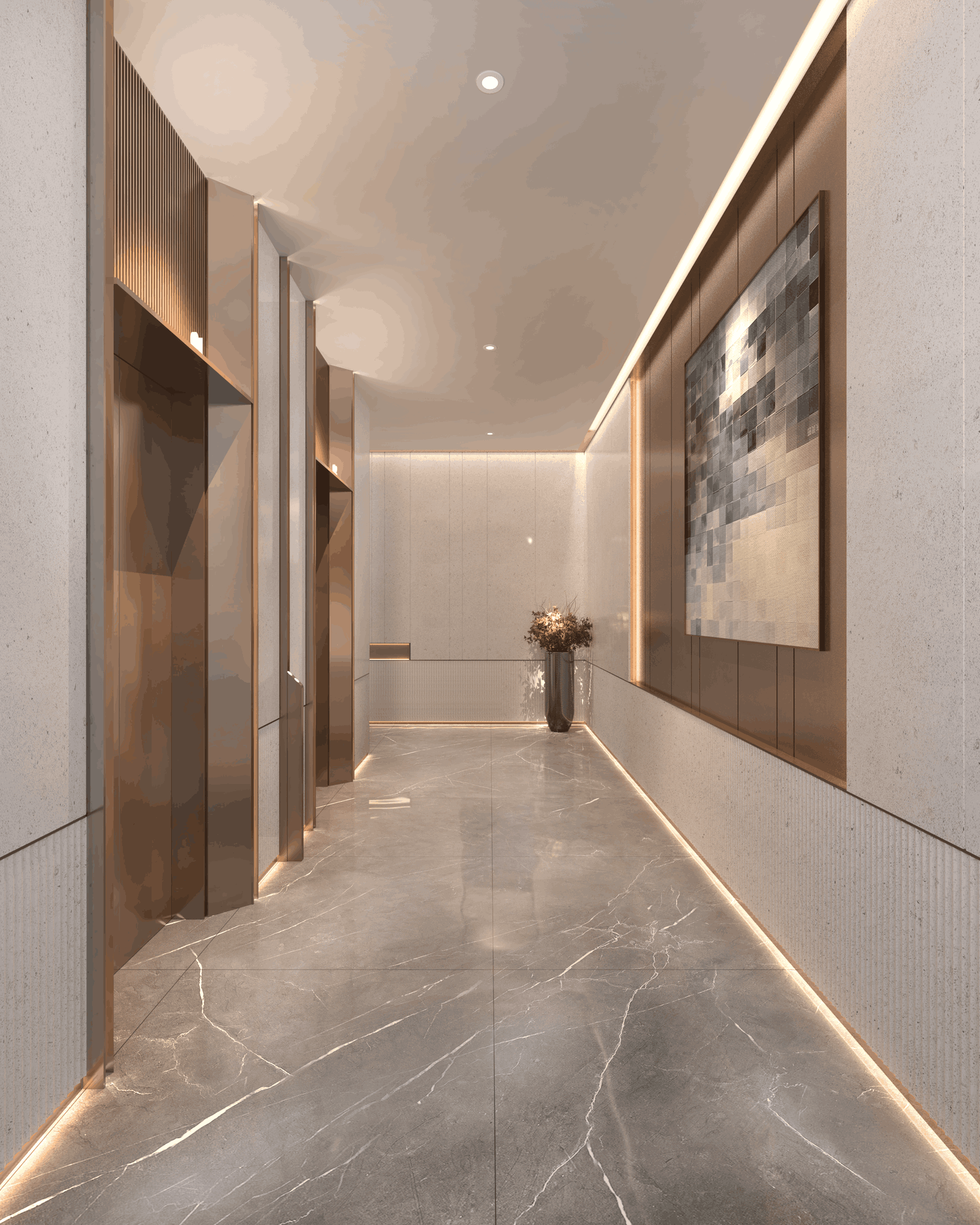 The project features modern, high-quality finishes, including rock slabs and stone materials, stainless steel accents, wooden veneer, and artistic paint, creating a refined and elegant atmosphere. The project is equipped with a smart home system.