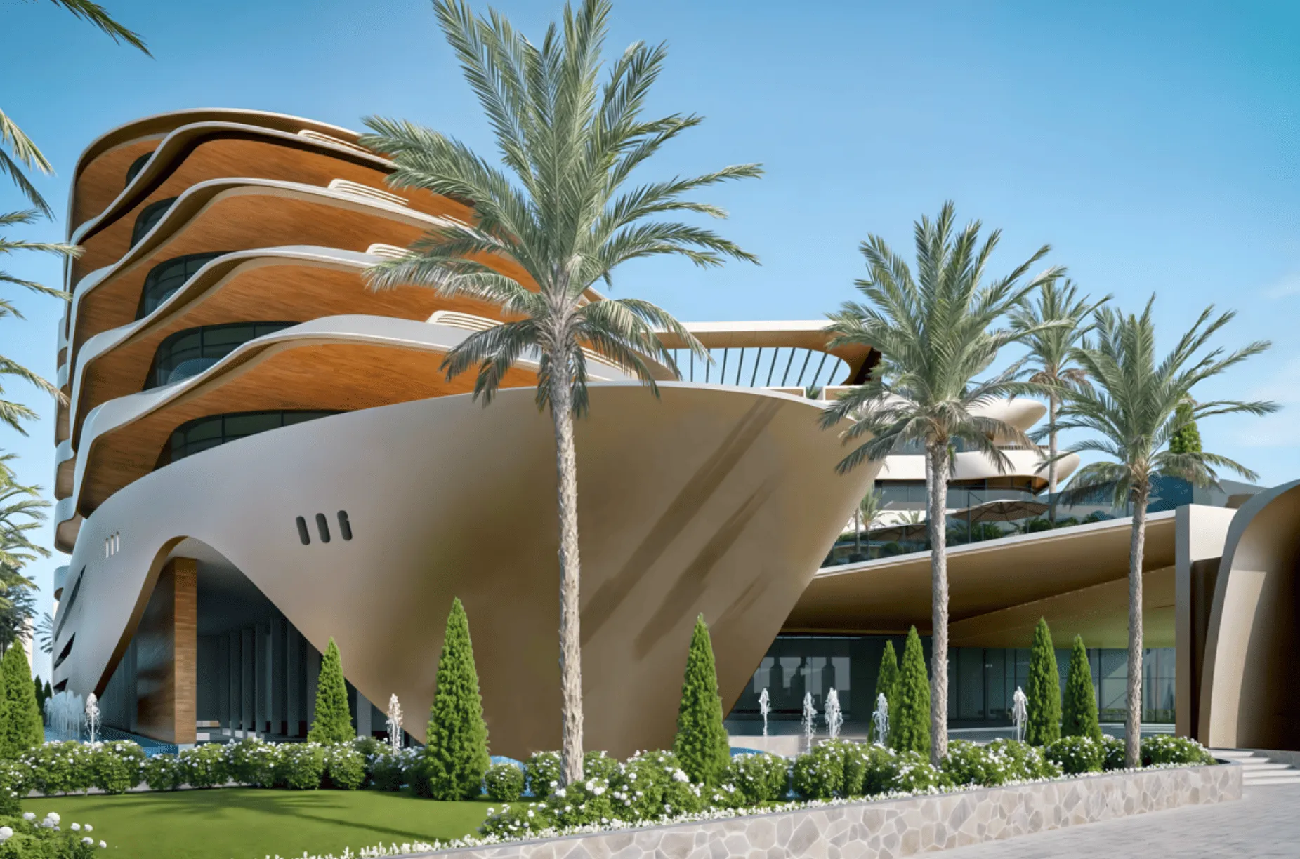 The Royal Yacht by Palladium Prime Real Estate Development is envisioned as a stunning hospitality project inspired by the elegance of a modern superyacht, blending fluid architecture with a calm, contemporary atmosphere. Designed as a sculpted, refined structure where architecture moves like the sea, it offers spacious layouts that feel open, bright, and luxurious. The project includes beautifully crafted studio apartments, each created to provide comfort, clarity, and a unique maritime-inspired character.