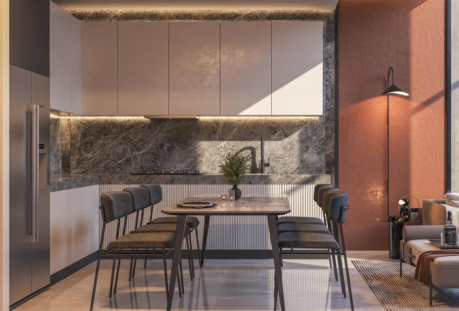 The interiors of Verdana VIII are defined by high-quality finishes, refined craftsmanship, and modern design sensibility. Each residence features premium flooring, elegant wall treatments, and stylish fixtures, creating a timeless aesthetic of understated luxury. The kitchens are fully fitted with sleek cabinetry, durable countertops, and branded appliances, offering both functionality and elegance for everyday living. While the homes are delivered unfurnished, their neutral tones and superior materials provide the perfect foundation for residents to personalize their spaces.